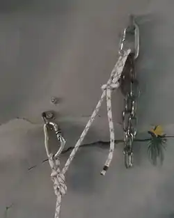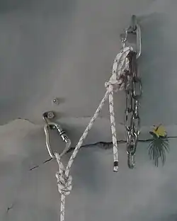 - Réaliser un nœud en huit de plein poing dont on perd un brin…