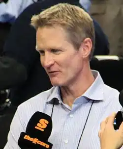 Mike Budenholzer (à gauche) et Steve Kerr (à droite) ont été sélectionnés comme entraîneurs respectifs de l'Est et de l'Ouest. | ||