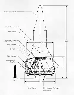 Il s’agissait d’un véhicule mono-étage en orbite entièrement récupérable, prévu pour amerrir avec des parachutes pour ralentir sa descente, puis des rétrofusées (placées au sommet)[3].