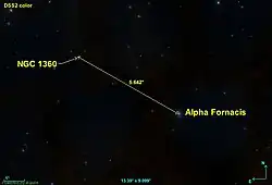 La nébuleuse NGC 1360 est située à environ 5,6 degrés au nord-est de Alpha Fornacis.