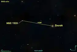La nébuleuse NGC 1535 est située à environ 4,1 degrés au nord-est de Zaurak (Gamma Eridani).