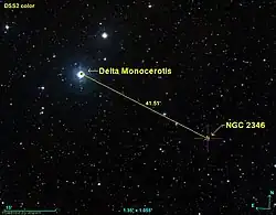 La nébuleuse NGC 2346 est près de l'étoile Delta Monocerotis à environ 41' au sud-ouest.