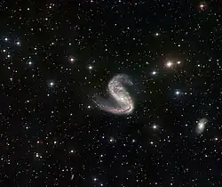 La galaxie spirale intermédiaire NGC 2442. La galaxie PGC 21457 est peut-être responsable de la forme asymétrique de NGC 2442. | |