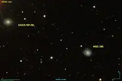 La position donnée de NGC 295 par Copeland est près de celle de la galaxie NGC 296, mais une étoile de magnitude 10 supposée se trouver tout près au nord-est ne correspond pas du tout à la description de Copeland. En conséquence NGC 295 considérée par plusieurs sources comme la galaxie NGC 296 ou encore comme un objet perdu[3]. Selon Harold Corwin[4], Copeland pensait observer une autre galaxie à proximité de NGC 296, il est donc maintenant clair qu'il a dû observer une paire de galaxies et non NGC 296. En fait, la galaxie qu'il croyait voir à proximité est CGCG 501-56 qui est environ à 1° de NGC 296. En utilisant cette galaxie à la place de "296" de Copeland, il ne fait aucun doute que la galaxie observée par celui-ci est NGC 295, soit la galaxie CGCG 501-56.