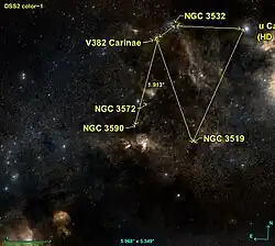 - (en) NGC 3572 sur WikiSky: DSS2, SDSS, GALEX, IRAS, Hydrogène α, Rayon-X, Photo, Sky Map, Articles et images