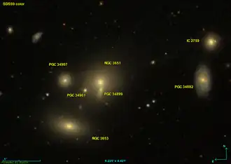 La galaxie NGC 3653 fait partie du groupe compact de Hickson 51[2],[4]. Les autres galaxies de ce groupe sont PGC 34882 (HCG 51B), NGC 3651 (HCG 51A), PGC 34907 (HCG 51D), IC 2759 (HCG 51E), PGC 34899 ou NGC 3651 NED02 (HCG 51F) et PGC 34901 (HCG 51G)[6].