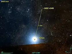 NGC 4349 est situé à environ 1,3 degrés au sud-est d'Acrux Alpha Crucis.