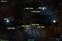 De nombreux autres amas se trouvent dans la même région de la sphère céleste, soit NGC 4852, NGC 5043, NGC 5120, NGC 5045, NGC 5269 et NGC 5281.