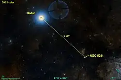 NGC 5281 est situé à environ 3,3 degrés au sud-ouest de Beta Centauri (Hadar).