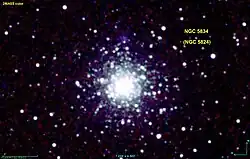 NGC 5834 est un amas globulaire situé dans la constellation du Loup à environ 104 000 a.l. (32.0 pc) du Soleil[3] et à environ 84 000 a.l. (26.3 pc) du centre de la Voie lactée. Il a été découvert par l'astronome écossais James Dunlop en 1826. Cet amas globulaire a aussi été observé par l'astronome britannique John Herschel le et il a été inscrit au New General Catalogue sous la désignation NGC 5824[5].