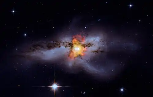 Plusieurs études dans divers domaines du spectre électromagnétique, soit en rayon X[5],[7], en lumière visible[8], dans le domaine du proche infrarouge[9] et également en onde radio[8] ont montré que cette galaxie possède deux noyaux, le résultat de la phase finale de la fusion de deux galaxies.