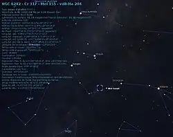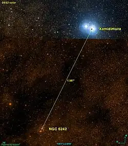 NGC 6242 est situé à environ 1,6 degré au sud-est de Xamidimura (Mu1 Scorpii).