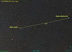 NGC 6525 est situé à environ 6,9 degrés au sud-est de l'étoile Alpha Ophiuchi.