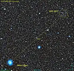 NGC 6811 est à environ 1,8° au nord-ouest de l'étoile Fawaris delta Cygni.