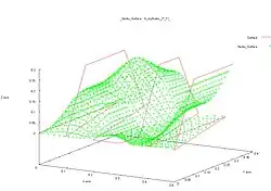 - Voici une NURBS tracée à l'aide de l'outil gnuplot (représentation type « fil de fer » (Filaire)et type point).