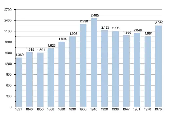 - Sources : INS, Rem. : 1831 jusqu'en 1970 = recensements, 1976 = nombre d'habitants au 31 décembre.