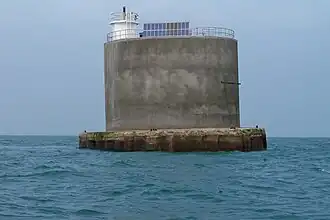 Cependant, à la fin de la guerre en 1918, une seule avait été achevé, à un coût énorme d'un million de livres, et était situé au port de Shoreham-by-Sea, en attente de mise en place. Une autre tourelle, partiellement construite, finira par être démantelée en 1924. En 1920, la tourelle achevée a été transportée par deux remorqueurs sur Nab Rocks, un rocher en eaux profondes dans l'approche est de Solent et précédemment marqué par un ancien phare. Sa flottabilité a été réalisée par la construction en nid d'abeilles de sa base en béton, créant 18 compartiments étanches. Lorsqu'ils ont été inondés sur place, la structure a coulé et s'est installée avec un angle de 3 degrés de la verticale vers le nord-est (cette inclinaison caractéristique est évidente à ce jour).