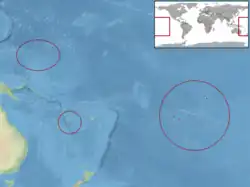 Cette espèce se rencontre au Vanuatu, en Nouvelle-Calédonie, aux Fidji, aux Tonga, aux Samoa, aux îles Cook, aux Tokelau, à Niue et en Polynésie française[2].