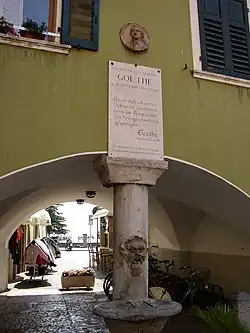 Aujourd'hui une plaque commémorative en terracotta et un médaillon en bronze orne la Casa Alberti, juste au-dessus de la fontaine. On peut y lire l'inscription suivante: "In questa casa dimorò Goethe il XII Settembre MDCCLXXXVI. Heute hab ich an der Iphigenie gearbeitet, es ist im Angesichte des Sees gut von statten gegangen" ("Dans cette maison demeura Goethe le . Aujourd'hui j'ai travaillé sur Iphigénie, avec la vue sur le lac tout s'est bien passé").