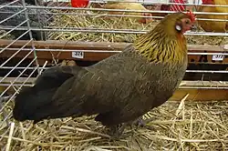 | Queue | Queue du coq longue, garnie de nombreuses faucilles larges qui ne touchent pas le sol.