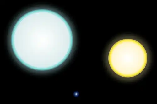 La découverte de l'extrême densité des naines blanches a suivi de peu la découverte de leur existence même. Si une étoile relève d'un système binaire, comme dans le cas de Sirius B et de 40 Eridani B, il est possible d'estimer sa masse à partir des observations des orbites respectives des deux corps constituant le système. Ceci fut fait pour Sirius B en 1910[78], conduisant à estimer sa masse à 0,94 M. Une estimation plus récente l'évalue à 1 M[79]. Les corps chauds rayonnant plus que les corps froids, la brillance de la surface d'une étoile peut être estimée à partir de sa température effective de surface, et ainsi, à partir de la forme de son spectre. Si la distance de l'étoile est connue, sa luminosité totale peut être estimée. La comparaison de ces deux valeurs permet de calculer le rayon de l'étoile. Cette sorte de raisonnement a conduit à réaliser, à la grande perplexité des astronomes de l'époque, que Sirius B et 40 Eridani B devaient être très denses. Par exemple lorsque Ernst Öpik estima en 1916 la densité d'un certain nombre d'étoiles binaires visuelles, il trouva que 40 Eridani B avait une densité supérieure à 25 000 fois celle du Soleil, si élevée qu'il la déclara « impossible »[80],[81]. Comme Arthur Stanley Eddington l'indiqua plus tard, en 1927[82] :
