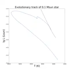 Les étoiles augmentent leur luminosité quand elles vieillissent et une étoile plus lumineuse doit émettre l'énergie plus rapidement pour maintenir son équilibre hydrostatique. Les étoiles plus massives que les naines rouges le font en augmentant leur taille et devenant des géantes rouges, d'une plus grande superficie. Cependant, plutôt que l'expansion, il est prévu que les naines rouges d'une masse inférieure à 0,25 masse solaire augmentent leur taux radiatif en augmentant leur température de surface et deviennent « plus bleues ». C'est parce que les couches superficielles des naines rouges ne deviennent pas significativement plus opaques avec l'augmentation de la température[1].