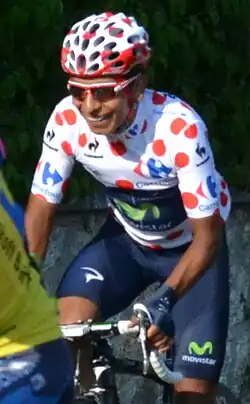 Nairo Alexander Quintana Rojas, né le à Tunja[1], est un coureur cycliste colombien. Il a notamment remporté le Tour d'Italie 2014 et le Tour d'Espagne 2016 et il a terminé à trois reprises sur le podium du Tour de France (deuxième en 2013 et 2015, troisième en 2016). Il est considéré comme l'un des meilleurs cyclistes sur route de l'histoire colombienne.