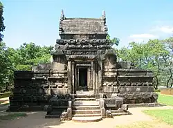 Par contre, les façades richement décorées sont dans le style qui a fleuri à Madras en Inde du sud au VIIe siècle, alors qu’une niche semi-circulaire contient une représentation de Kubera (dieu des richesses), figure typique du Sri Lanka.