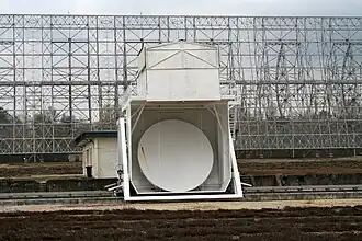- La station de radio-astronomie, avec le grand radiotélescope inauguré par Charles de Gaulle en 1965, le radiohéliographe[37] (47 antennes de 5 m de diamètre), le réseau décamétrique (144 antennes sur 10 000 m²), ainsi qu'une station LOFAR. Le terrain a été choisi en 1953 par l'École normale supérieure en raison de sa taille, de sa relative proximité de Paris et de l'absence de tissu industriel pouvant générer des parasites. Administrativement, l'observatoire de Nançay fait partie de l'Observatoire de Paris et est aussi partenaire de l'université d'Orléans. Du fait du radiotélescope, Nançay est une zone blanche en matière de 4G[38].