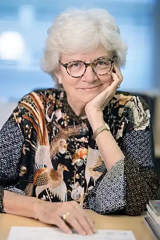 Nancy Hopkins, biologiste moléculaire américaine (née Doe le ) est professeur de biologie à Amgen, Inc. au Massachusetts Institute of Technology (MIT)[2],[3]. Elle est membre de l'Académie nationale des sciences, de l'Institut de médecine de l'Académie nationale et de l'Académie américaine des arts et des sciences. Elle est connue pour ses recherches identifiant les gènes nécessaires au développement du Poisson-zèbre, et pour ses recherches antérieures sur l'expression des gènes dans le virus bactérien lambda et sur les virus tumoraux à ARN de souris. Elle est également connue pour son travail en faveur de l’égalité des chances pour les femmes scientifiques dans le monde universitaire.