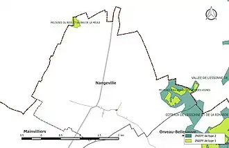 L’inventaire des zones naturelles d'intérêt écologique, faunistique et floristique (ZNIEFF) a pour objectif de réaliser une couverture des zones les plus intéressantes sur le plan écologique, essentiellement dans la perspective d’améliorer la connaissance du patrimoine naturel national et de fournir aux différents décideurs un outil d’aide à la prise en compte de l’environnement dans l’aménagement du territoire. Le territoire communal de Nangeville comprend trois ZNIEFF[INPN 1].