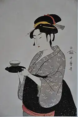 Naniwaya Okita était une jeune japonaise de la fin du XVIIIe siècle, servante dans une maison de thé, qui fut l'un des modèles préférés du peintre Utamaro.