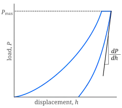 Oliver et Pharr[3] ont établi un modèle analytique pour la mesure de dureté par l’indentation instrumentée. Ils définissent donc la dureté par l’équation suivante :