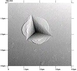 - ↑ (en) Oliver W.C. et Pharr G.M., « Measurement of hardness and elastic modulus by instrumented indentation: Advances in understanding and refinements to methodology », Journal of Materials Research, vol. 19, , p. 3 (DOI 10.1557/jmr.2004.19.1.3, lire en ligne)