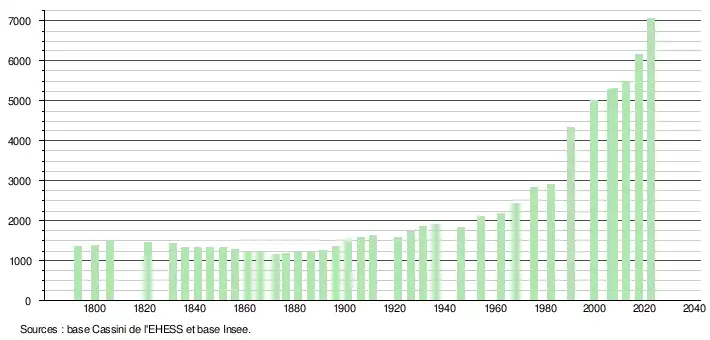- ↑ Fiches Insee - Populations de référence de la commune pour les années 2006, 2007, 2008, 2009, 2010, 2011, 2012, 2013, 2014, 2015, 2016, 2017, 2018, 2019, 2020, 2021 et 2022.