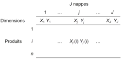 À chaque dégustateur, sont associées les coordonnées horizontale (X) et verticale (Y) de chaque produit. Cet ensemble de données est appelé nappe. S'il y a produit, ces données peuvent être regroupées dans un tableau ayant lignes (les produits) et deux colonnes (X et Y). S'il y a dégustateurs, les données sont regroupées dans un tableau ayant lignes et colonnes (figure 1).