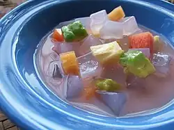 La nata de coco est un produit comestible élaboré par fermentation d'eau de coco, gélatineux, translucide, principalement composé d'eau et de cellulose. Originaire des Philippines, elle a par la suite été produite en Indonésie.