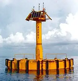 - plus de 110 bouées météorologiques côtières amarrées, principalement situées dans la zone économique exclusive (ZEE) des États-Unis et les Grands Lacs, qui fournissent des données météorologiques et océanographiques en temps réel ;