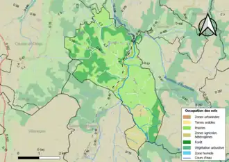 L'occupation des sols de la commune, telle qu'elle ressort de la base de données européenne d’occupation biophysique des sols Corine Land Cover (CLC), est marquée par l'importance des territoires agricoles (71,7 % en 2018), en augmentation par rapport à 1990 (70,4 %). La répartition détaillée en 2018 est la suivante : prairies (62,1 %), forêts (28,3 %), zones agricoles hétérogènes (9,6 %)[20].
