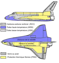 - bouclier thermique : quelque 24 000 tuiles isolantes en carbone composite ou en silice