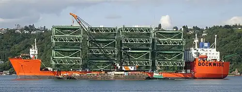 - ↑ (en) « Dockwise Vanguard Loads Largest Offshore Platform on Maiden Voyage », sur gCaptain.