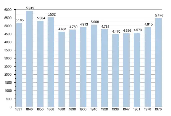 - Sources : INS, Rem. : 1831 jusqu'en 1970 = recensements, 1976 = nombre d'habitants au 31 décembre[3].