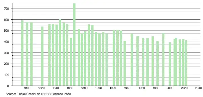 (Sources : Ldh/EHESS/Cassini jusqu'en 1999[33] puis Insee à partir de 2006[34].)