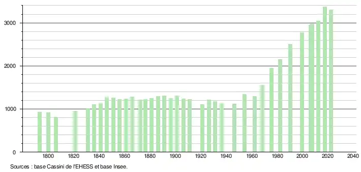 - ↑ Fiches Insee - Populations de référence de la commune pour les années 2006, 2007, 2008, 2009, 2010, 2011, 2012, 2013, 2014, 2015, 2016, 2017, 2018, 2019, 2020, 2021 et 2022.