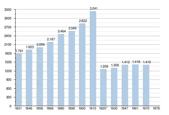 - Sources : INS, Rem. : 1831 jusqu'en 1970 = recensements, 1976 = nombre d'habitants au 31 décembre.