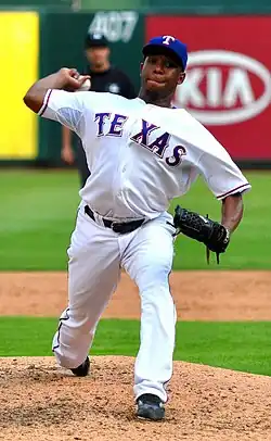 Il joue pour les Rangers du Texas de 2009 à 2015, est élu meilleure recrue de la Ligue américaine en 2010 lorsqu'il bat le record des majeures pour le plus grand nombre de sauvetages par un lanceur recrue. Il est la même année invité au match des étoiles.