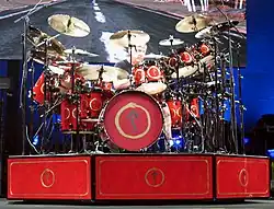 Peu après avoir choisi d'inclure des déclencheurs électroniques, il installe ce qui devient sa marque de fabrique : un kit de batterie rotatif[33]. Cela lui permet de faire tourner sur elle-même toute sa batterie, afin qu'il puisse jouer sur son kit acoustique (« devant »), puis électronique (« derrière ») tout en restant face au public. Grâce à cet effet spécial, il effectue une transition symbolique entre ses styles de batterie en plein milieu de son solo, en plus de l'effet visuel transmis au public.