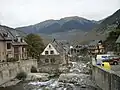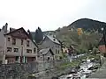 La rivière Nere est freinée par un petit barrage à son entrée dans Vielha e Mijaran