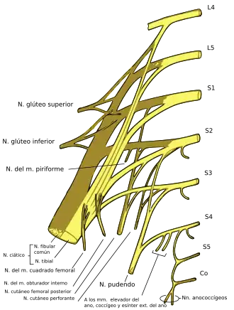 - ↑ Nerf glutéal inférieur, nervus gluteus inferior, Dictionnaire médical de l'Académie de Médecine – version 2023