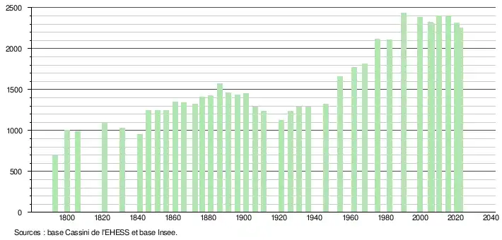- ↑ Fiches Insee - Populations de référence de la commune pour les années 2006, 2007, 2008, 2009, 2010, 2011, 2012, 2013, 2014, 2015, 2016, 2017, 2018, 2019, 2020, 2021 et 2022.